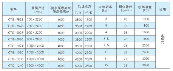 • CTG系列干選筒式磁選機是一種用于河沙提取鐵粉和碎粉狀貧礦富集而設計的高效磁選設備。還可根據(jù)用戶需求設計生產(chǎn)各種干選成套設備。